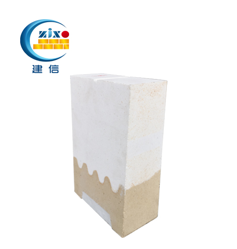 重質部分原材料采用電熔莫來石、電熔剛玉、廣西白泥為主要原料,輕質部分原材料采用47莫來石、藍晶石、漂珠、焦寶石為主要原料,成型時模具中間設置隔料板,兩端添加重質材料和輕質材料,經高壓成型、高溫燒結而制成的成品,該產品具有耐磨、耐沖刷、耐高溫、抗剝落、抗酸、抗堿侵蝕等性能,廣泛使用在環保危廢處置生產線回轉窯及二燃室等熱工設備內襯